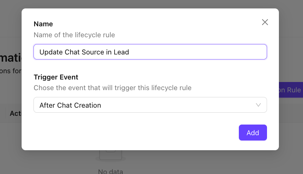 - Add a Name and choose the Trigger Event Type. Chose the event that will trigger this lifecycle rule