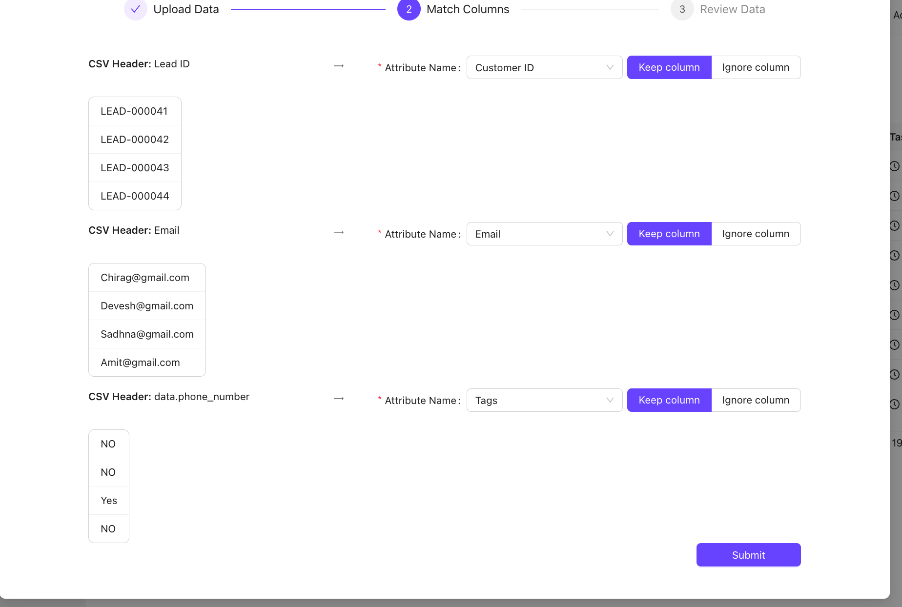 Edit the mapping of the CSV header name with the Chakra Attribute Name if required. Click Submitβ