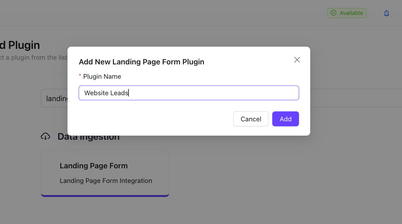 You can automatically create or update leads in Chakra from external sources such as website forms, landing pages, your CRM, or any other system by using the Landing Page Form plugin. This plugin receives data via a webhook and converts it into Chakra leads.